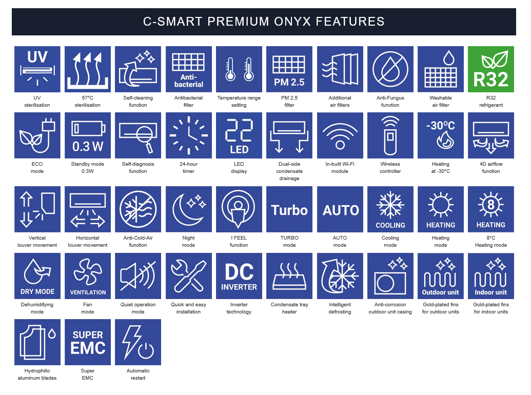 Dankzij de grondige zelfreinigende functie wordt de binnenkant van de airconditioner schoon gehouden door vocht te verwijderen en de groei van bacteriën, schimmels en schimmels te remmen.