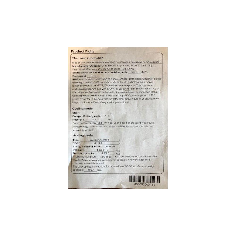 De kenmerken kenmerken van de Gree Pular 24000btu/7.0kW : (220 m3)