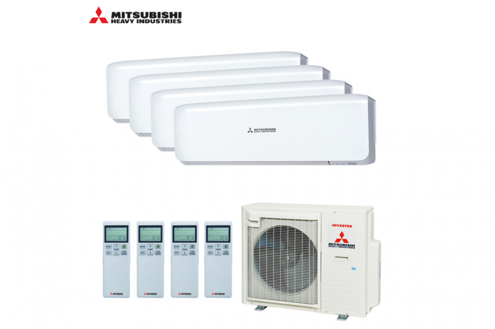 Mitsubishi Heavy Industries Quattro-split 8.0kW Outdoor + 3x 2.5kW & 1x 3.5kW Indoor Cool & Heat - WiFi Voorbereiding.