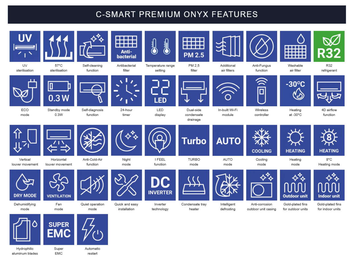 AUX airco systeem is een merk die niet alleen zorgt voor koeling tijdens warme dagen maar ook voor heerlijke warmte in de koude winter dagen of kille voor een seizoen avonden, u kunt met deze installatie heel eenvoudig ruimtes verwarmen, slaapkamers, woonkamers, Tiny houses, bedrijfs- en kantoorruimten, chalets enz. Dit scheelt u wel tot 40 procent in de stookkosten ten opzichte van uw huidige verwarmingssysteem. Tevens kunt u de luchtvochtigheid filteren en eventueel alleen ontvochtigen voor een juiste luchtvochtigheid waardoor een aangenaam leefklimaat ontstaat en uw lichaam niet in een benauwde gevoelsmodus. De airco systemen van AUX zijn standaard voorzien van WiFi en een DC inverter warmtepomp, ook kunt u in de winter bij koude dagen heerlijk en goedkoop verwarmen!