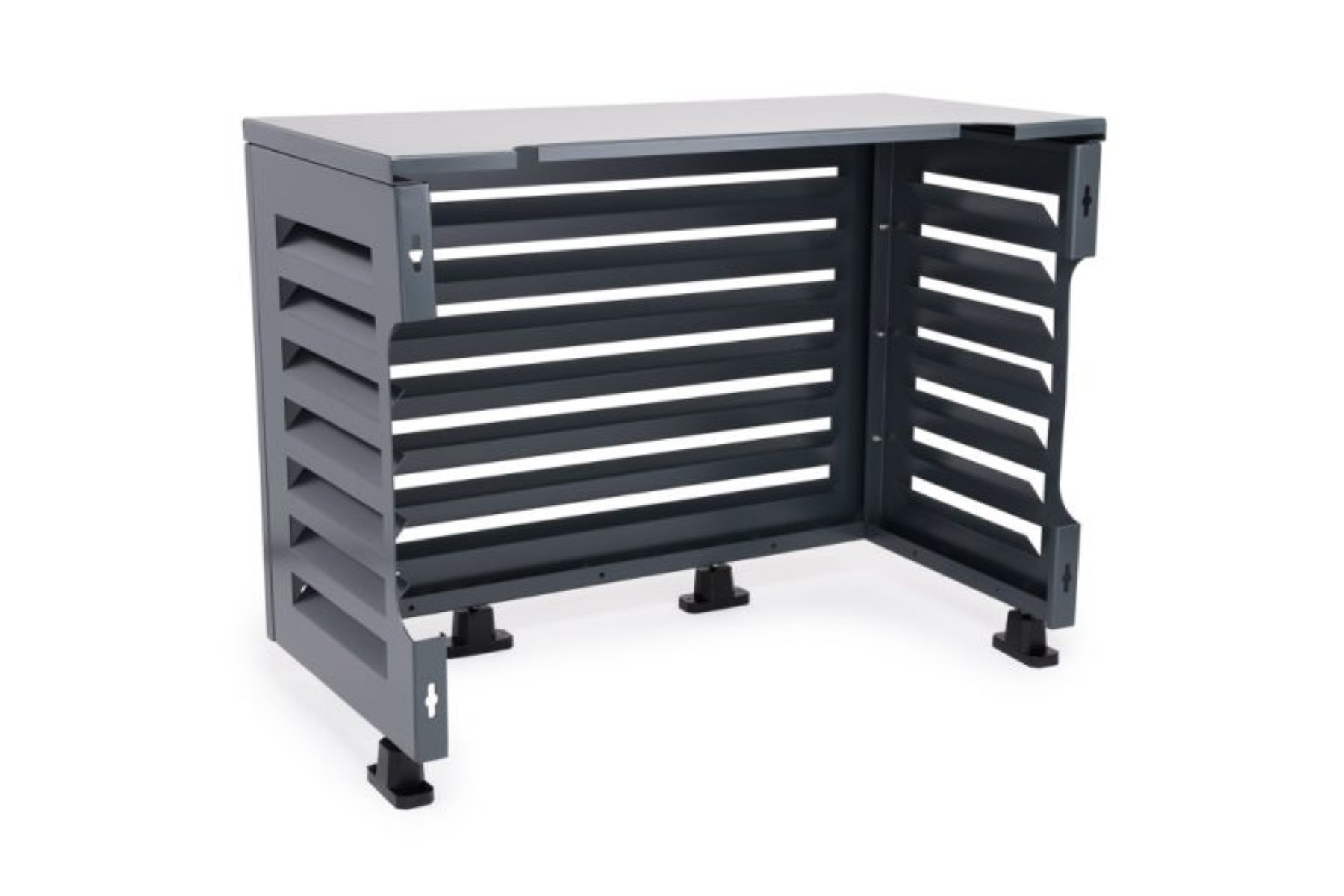 De omkasting is geschikt voor ieder merk airco buitenunit, ook te gebruiken voor een kleine warmtepomp of zwembadwarmtepomp.